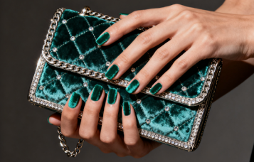 絨面美甲看起來柔軟又華麗。選擇寶石色調,如祖母綠、紅寶石或藍寶石。非常適合晚宴或跨年派對造型。