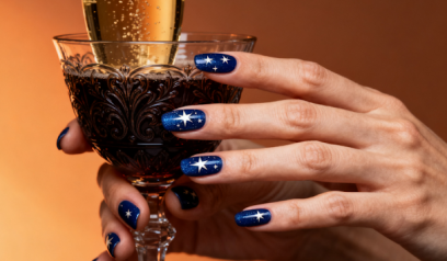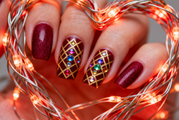 深綠色指甲配上金色或銀色細節,完美展現節日氣息。可加上星星或聖誕樹圖案,瞬間升級造型。