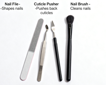 - 細砂指甲銼板(Emery board): 方便快速修補;避免使用粗砂板,容易損傷指甲。