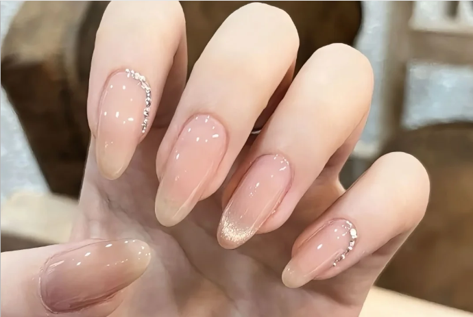 美甲以淡粉或裸色為底,搭配細緻的白色指尖,可再點綴微光粉、金絲線條或微閃亮粉,使這款法式美甲更具現代感。若妳同時配戴珍珠耳環、穿著絲綢白紗、梳著低髻髮型,我敢保證——妳一定是全場最美的新娘。