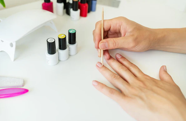 首先,將指甲浸泡在溫水中約五分鐘,然後使用角質層推棒輕輕將角質層推回,再修剪多餘的角質層。最後,塗抹少量角質層油,有助於滋潤和養護你的天然指甲床及周圍皮膚。