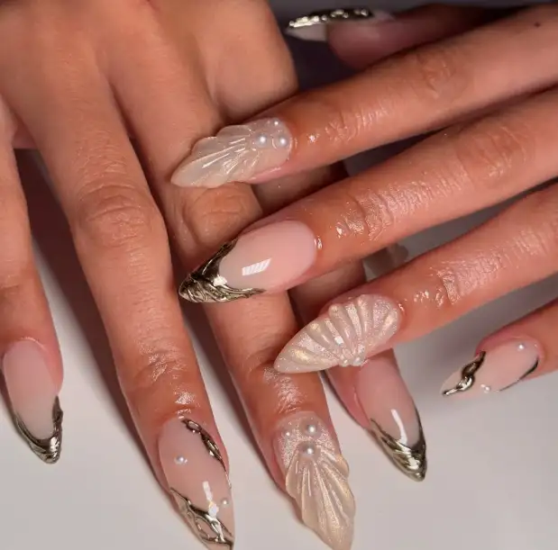 There are various ways to handle this trend, and design inspirations are constantly emerging. Imagine nails adorned with gemstones or dangling metal ornaments, as if pierced. 3D chrome nail art is also a popular choice to try this nail art trend. Some people even draw inspiration from everyday household items, such as blankets, glassware, and even ceramic tiles in their homes.